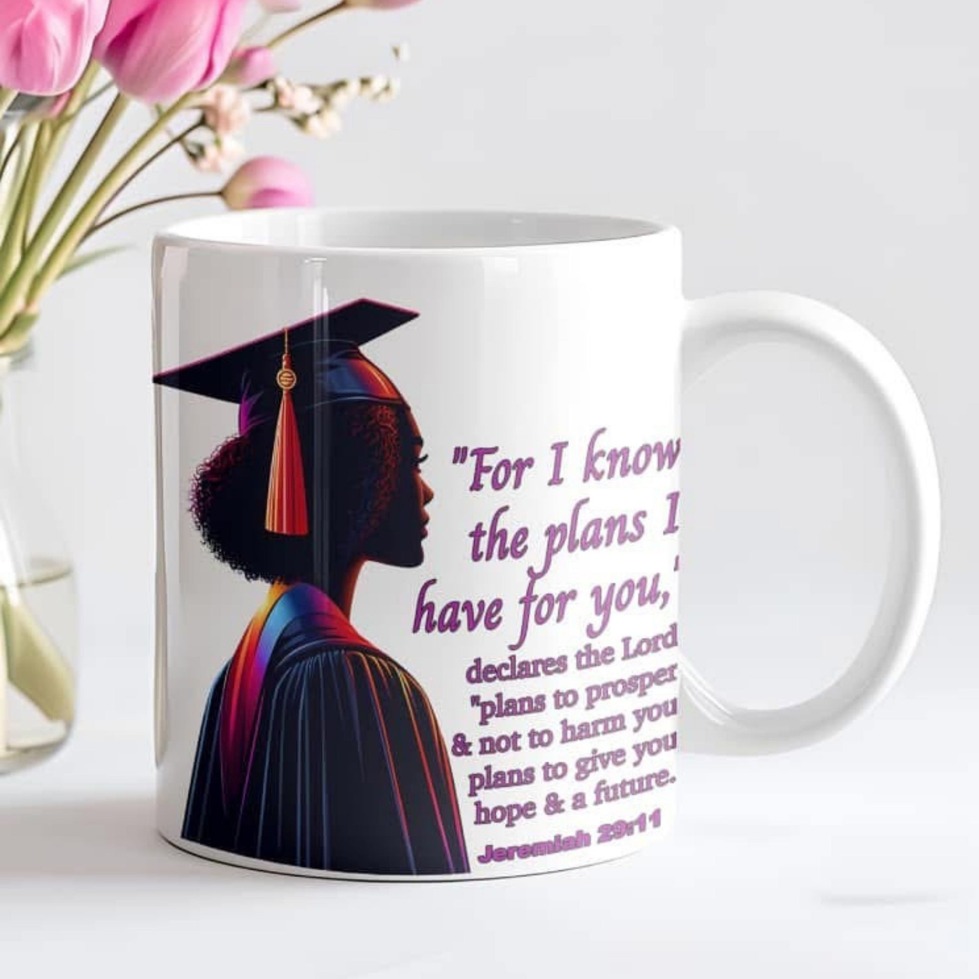 Celebrate your graduate's achievements with this meaningful keepsake mug. Featuring the inspiring message "For I Know the Plans," this mug serves as a daily reminder of faith, hope, and purpose during this exciting new chapter. Perfect for coffee, tea, or hot chocolate, it's an ideal gift for class of 2026 graduates. Durable ceramic construction ensures lasting quality, while the elegant design complements any kitchen or dorm room. A thoughtful way to honor their accomplishments and encourage them forward.